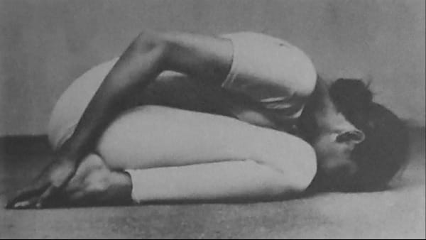Here, she has the legs in the classic seated virasana position, and then comes forward.